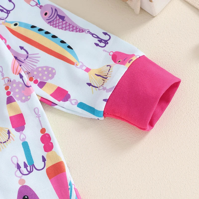 Lioraitiin Baby Boys Autumn Casual Romper Long Sleeve Crew Neck Fish Print Oblique Zipper Jumpsuit