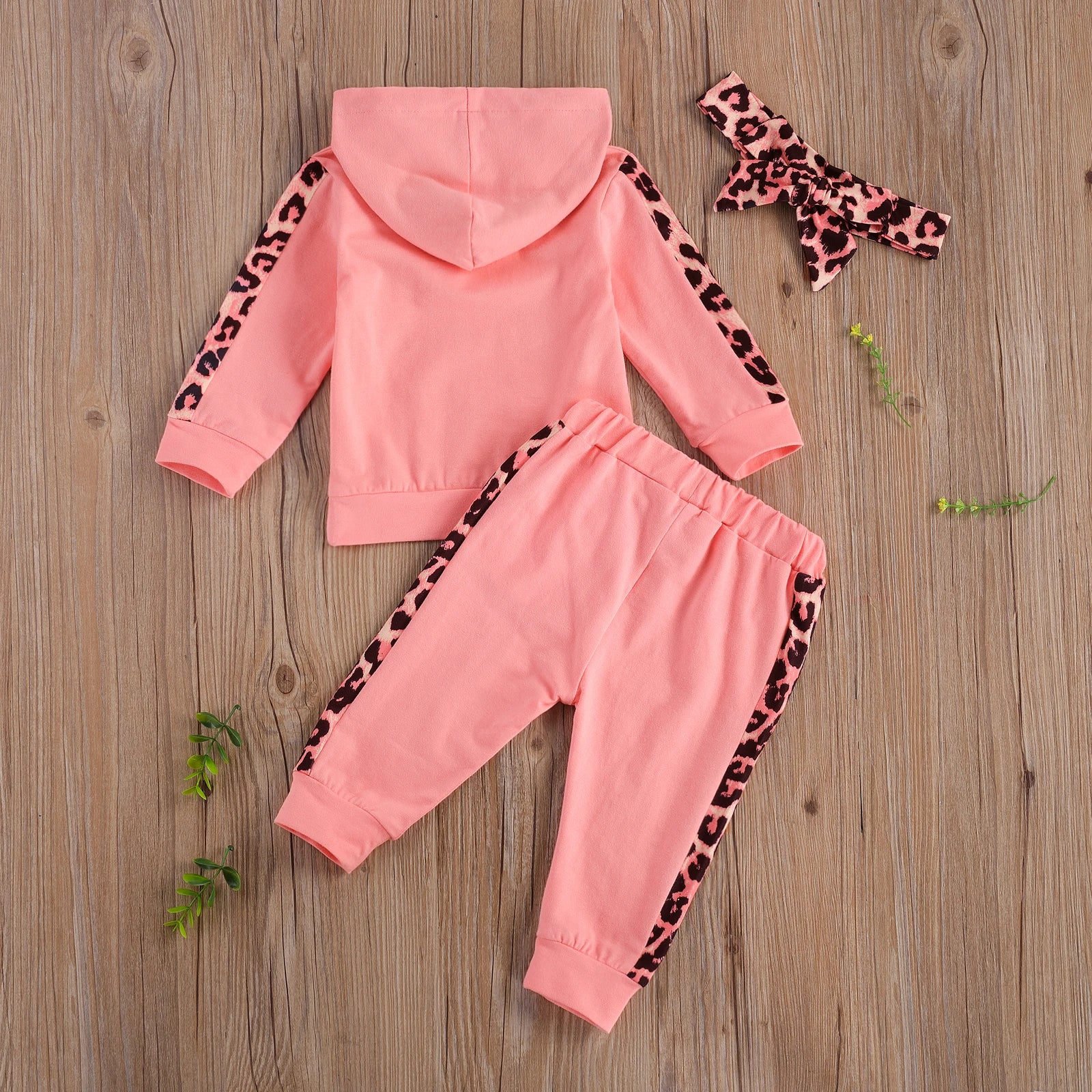 This adorable 3-piece set includes a long-sleeved hooded T-shirt with charming letter and leopard stitching, cozy long trousers, and a matching headband. Perfect for spring and fall, it keeps your baby girl warm and comfortable while supporting her active days with soft, breathable fabrics designed for gentle skin.