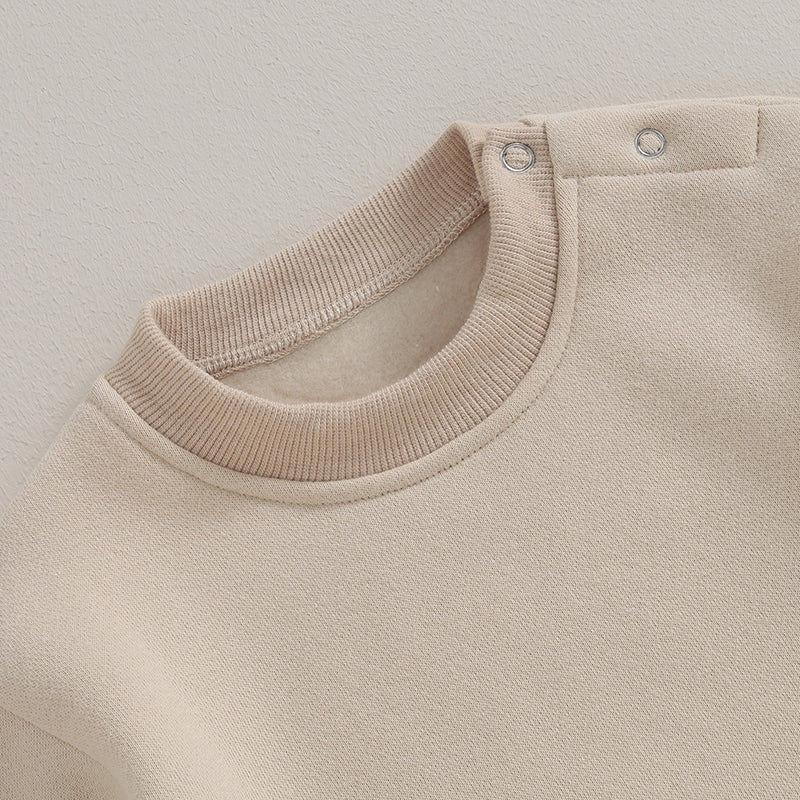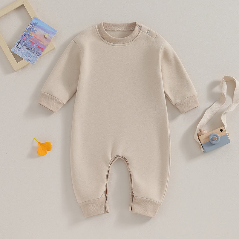 Pudcoco Toddler Baby Girls Boys Sweatshirt Romper Solid Color Fleece Long Sleeve Jumpsuit for Newborn Cute Clothes 0-18M