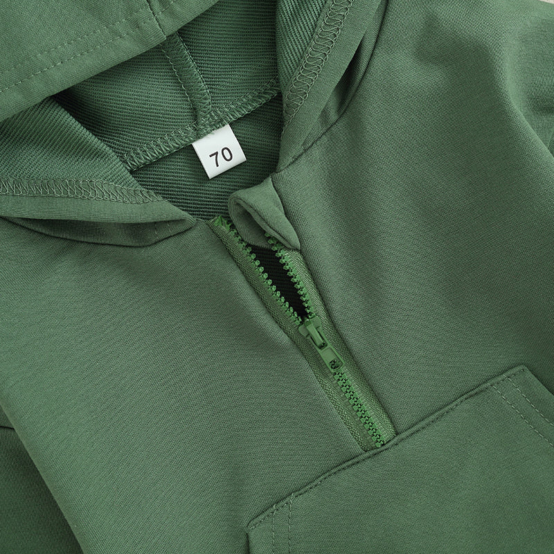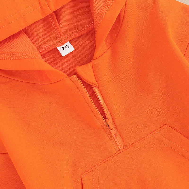 Keep your little one cozy and comfortable with this 0–36-month hooded sweatshirt. Designed for toddlers, it features a soft, solid color fabric and long sleeves, making it perfect for spring and fall. Easy to pull on, this hoodie offers warmth without bulk, allowing your child to move freely during playtime. A practical and stylish addition to any toddler’s wardrobe.