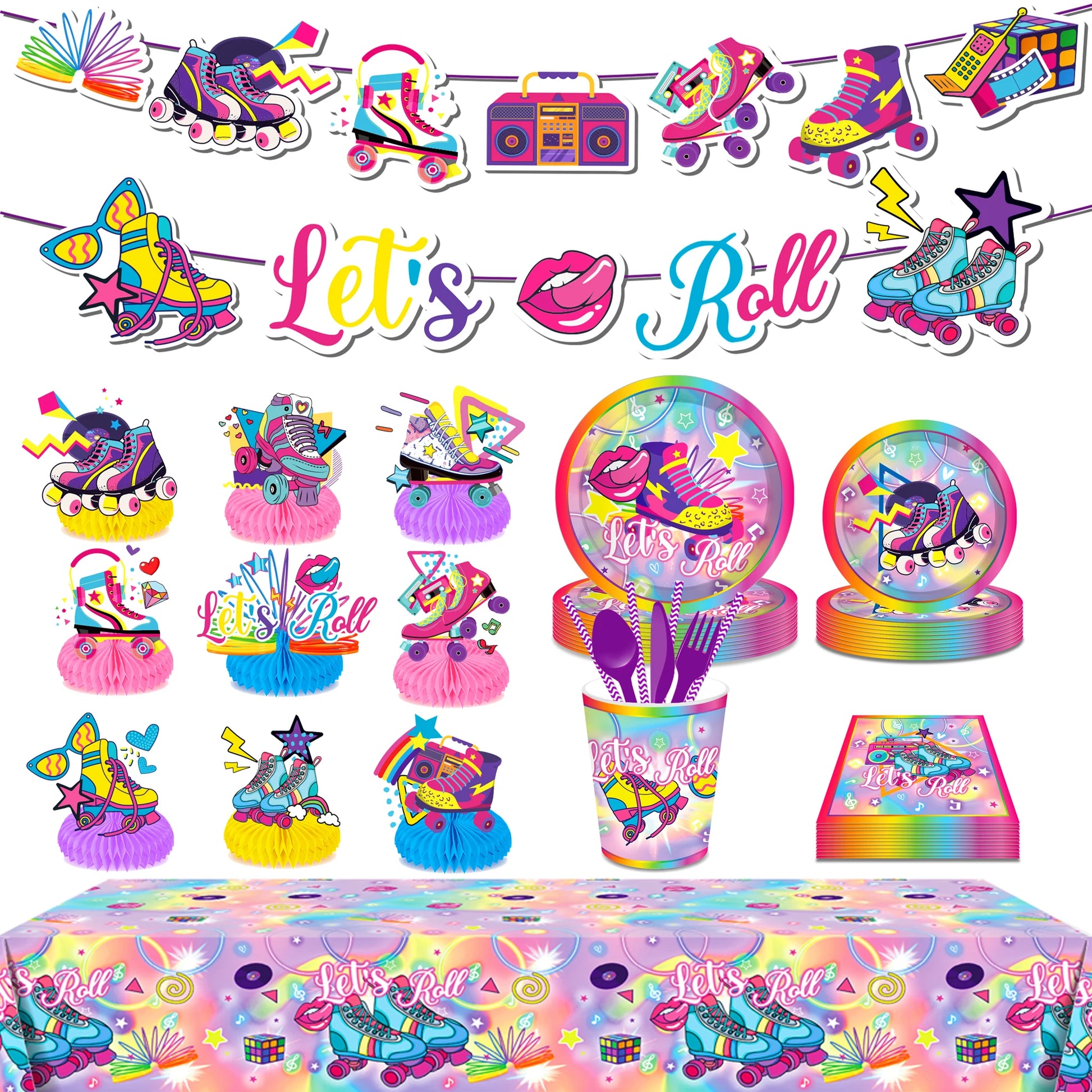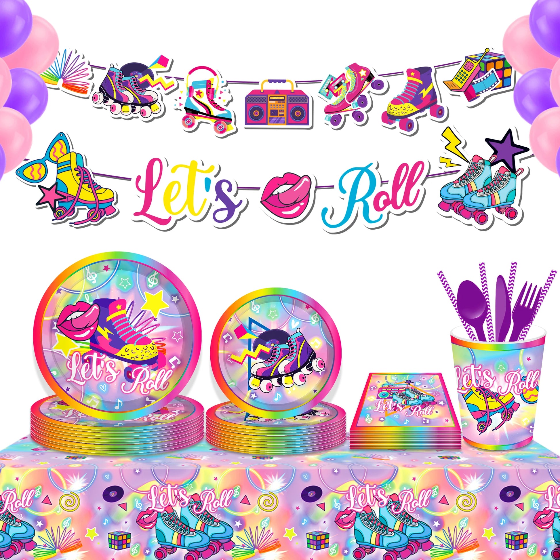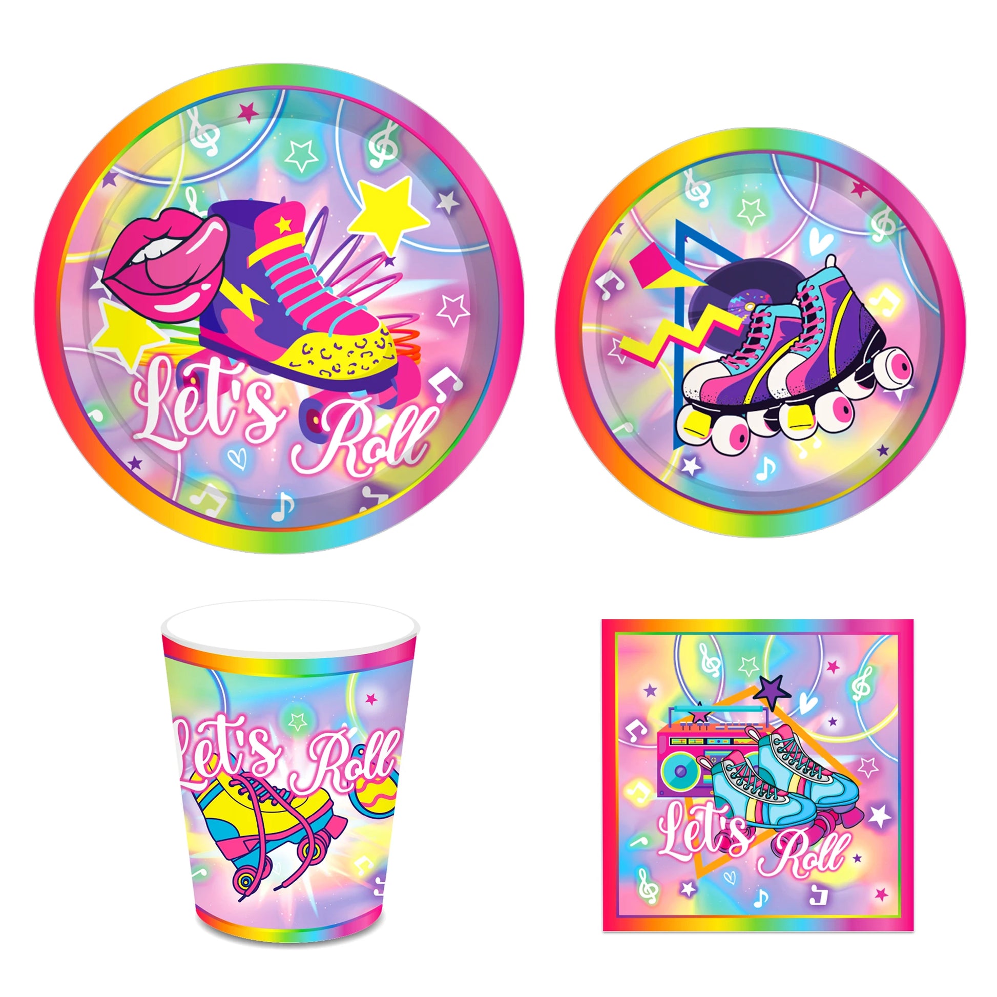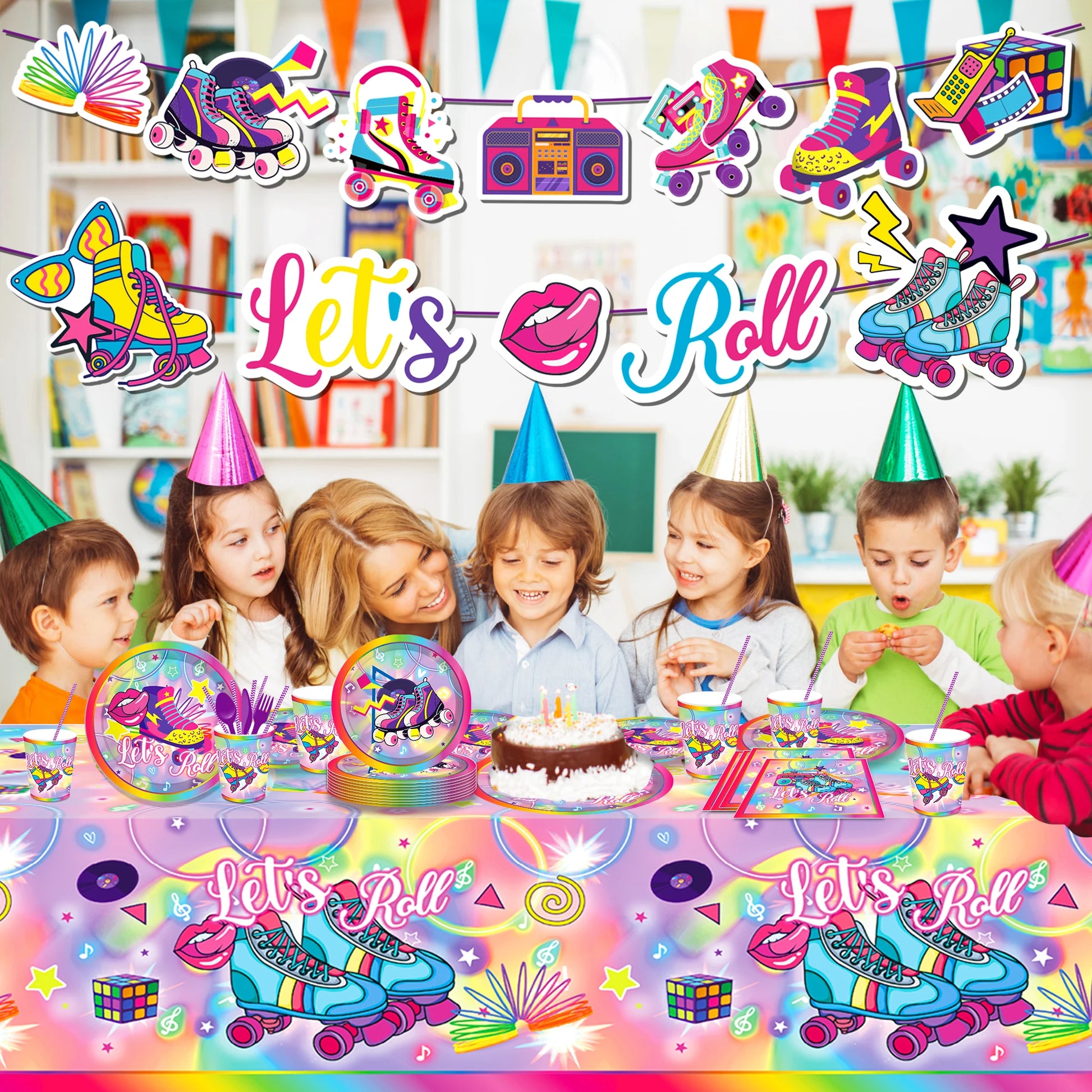 Cartoon Roller Skating Party Disposable Tableware Set Kids Ice Skates Sports Game Birthday Camping Tablecloth Baby Shower Decor
