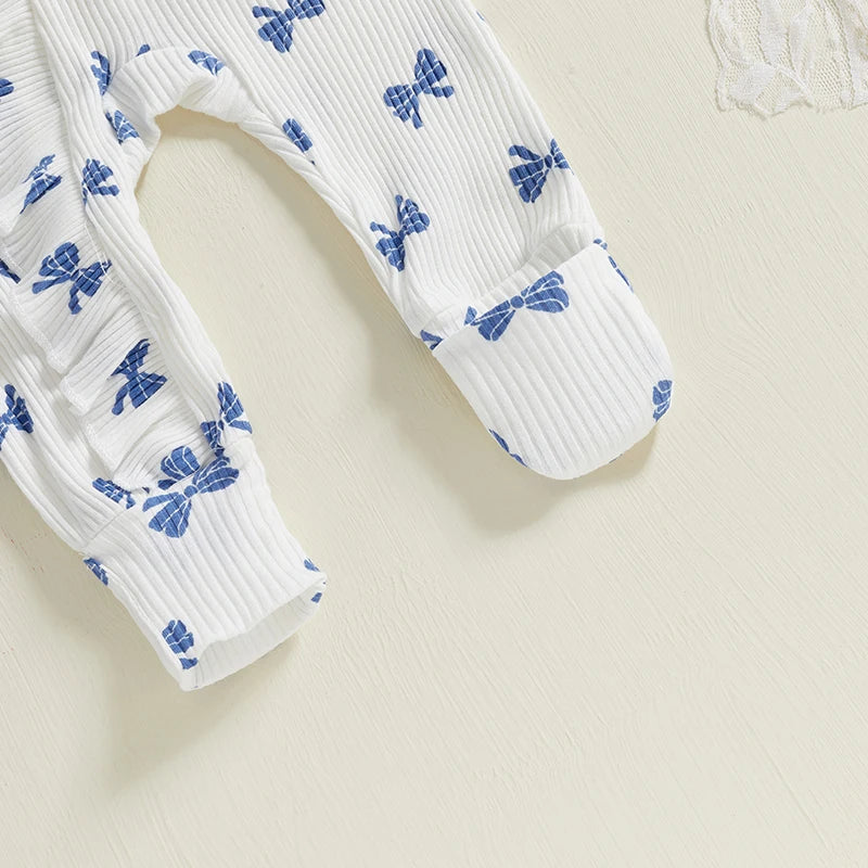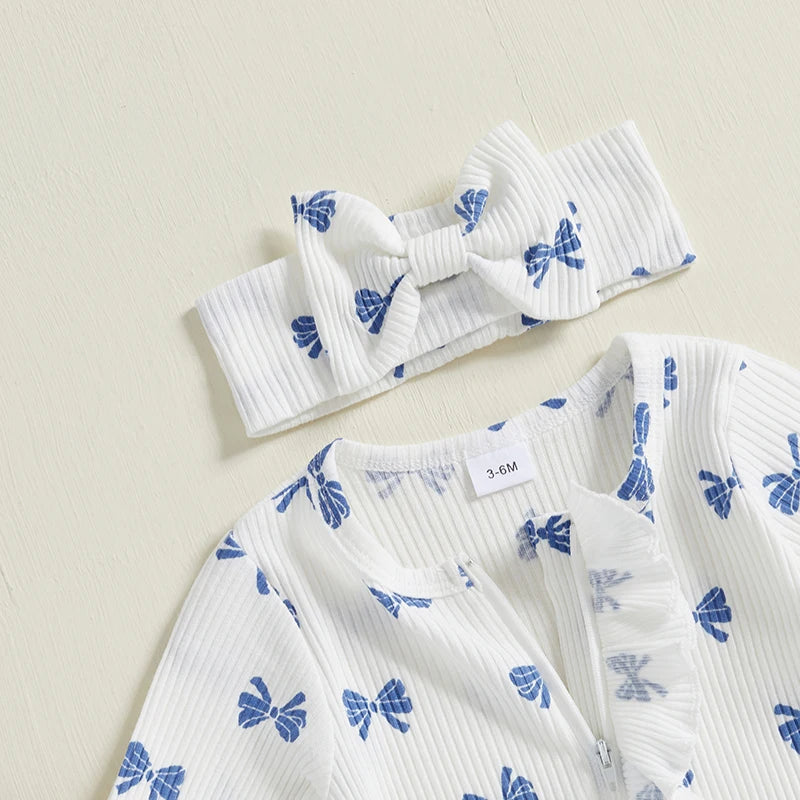 FOCUSNORM Newborn Baby Girls Boys Fall Footies Romper Sets Ruffle Long Sleeve Bow/Flowers Print Jumpsuit with Headband