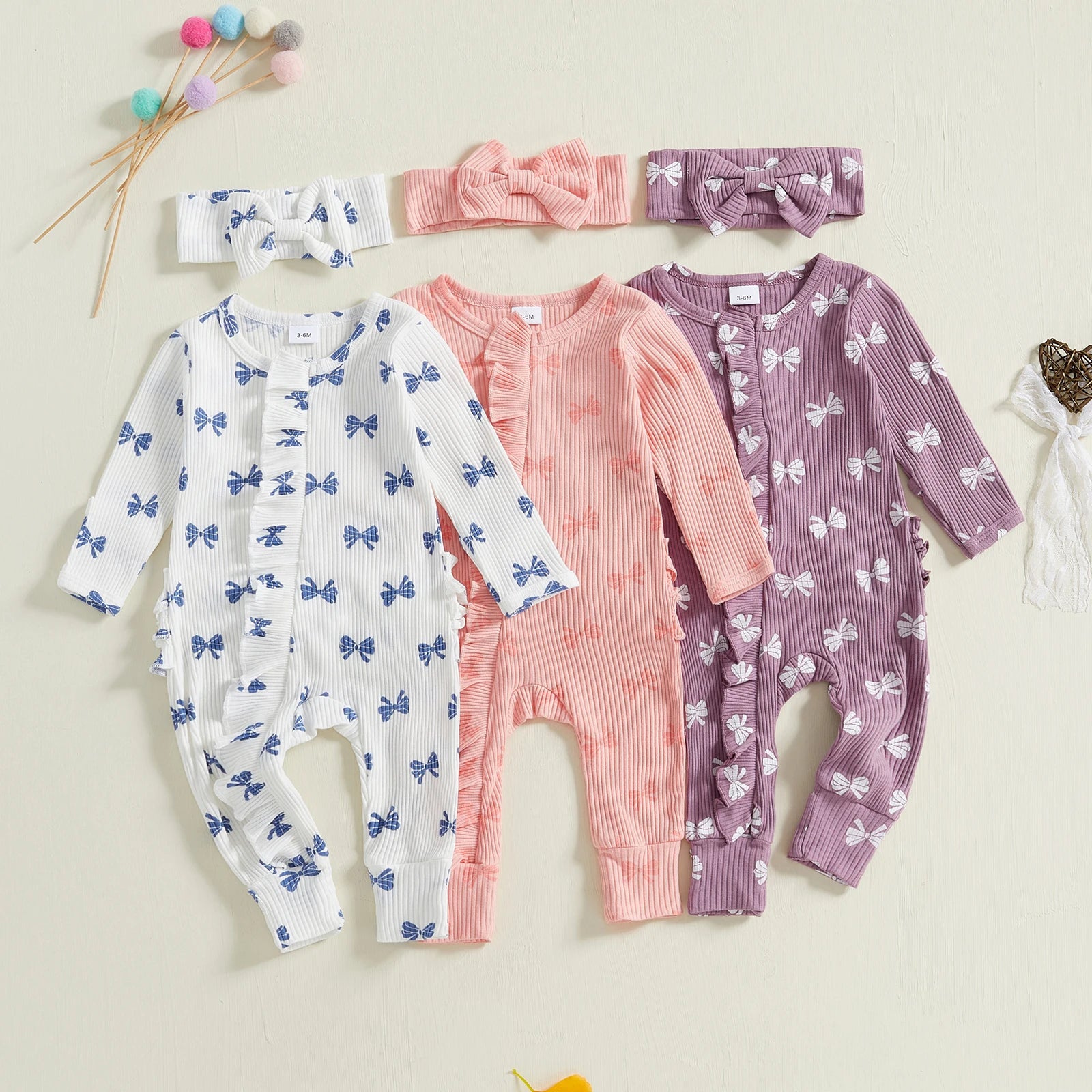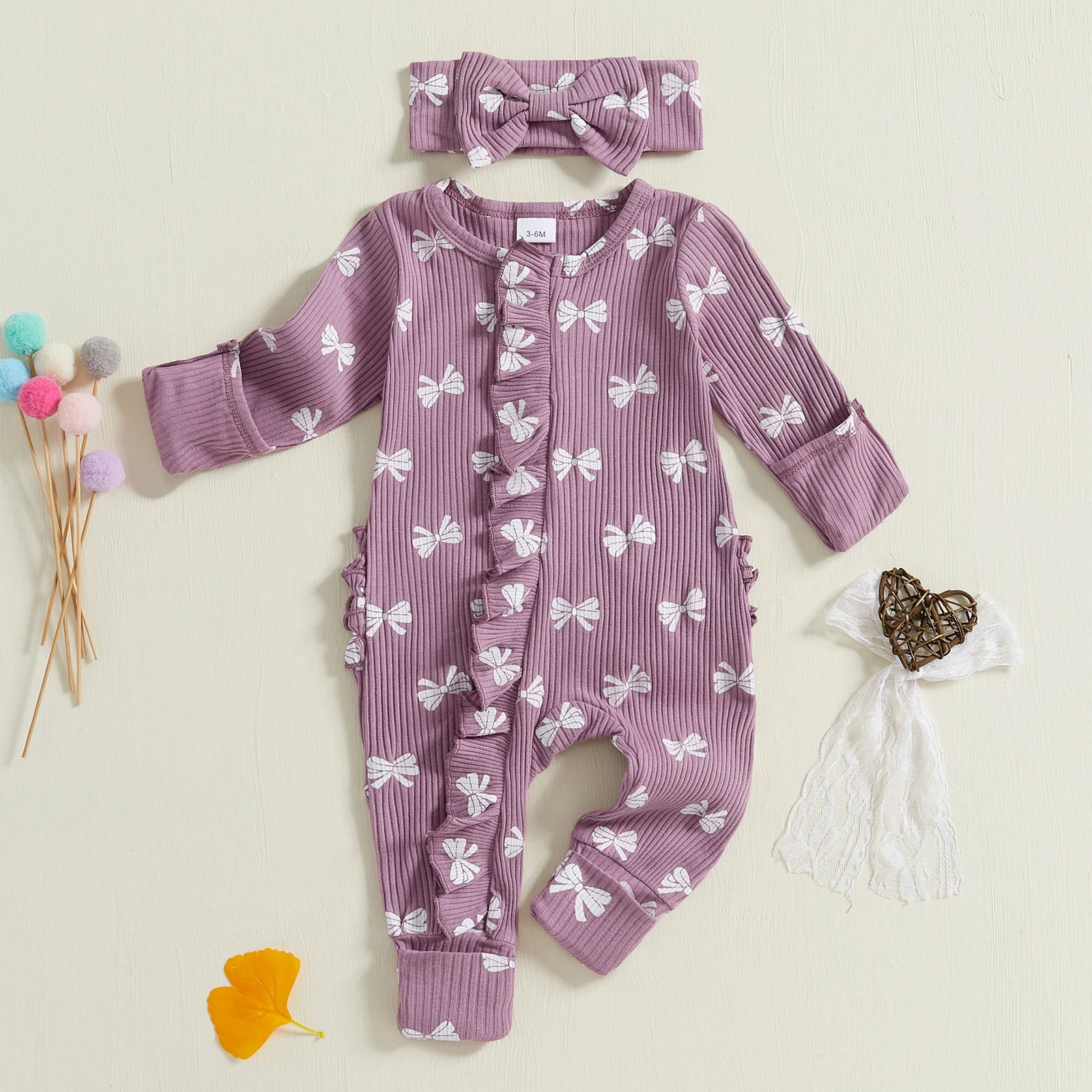 Dress your little one in cozy comfort with the FOCUSNORM Newborn Footies Romper Set. Featuring soft, breathable fabric, this ruffle-trimmed, long-sleeve jumpsuit keeps babies warm through fall’s crisp days. Adorned with charming bow and flower prints, it includes a matching headband for a complete, adorable look. Ideal for delicate newborn skin, this set combines style and gentle warmth to support your baby’s comfort every day.