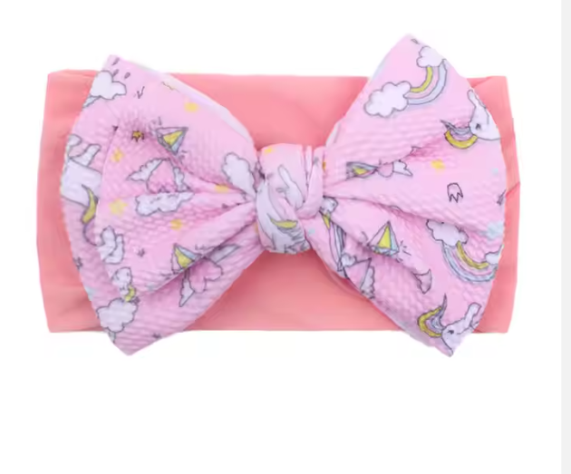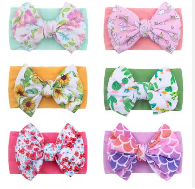 European and American new children's headband baby Nylon printed double layer bow. This hair band offers a relaxed fit, ensuring comfortable wear throughout the day without causing pressure or discomfort. Its design accommodates various head sizes, making it a versatile accessory for everyday use. Ideal for keeping hair neatly in place while maintaining a natural, effortless look.